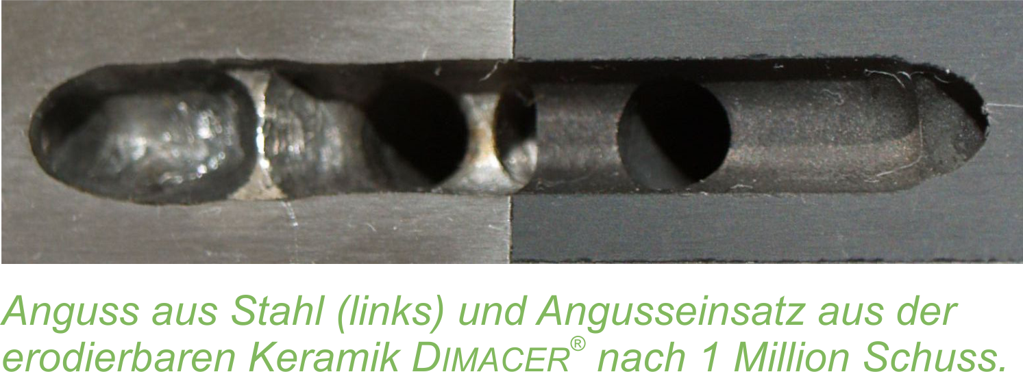 - Thermische Ausdehnung und Wärmeleitfähigkeit des keramischen Materials und des Werkzeugstahls müssen annähernd gleich sein, um das